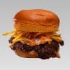 Salsa parrilla, queso Gouda ahumado, salsa Cheddar, Doble Smash ternera, Bacon, Pimiento y brotes.