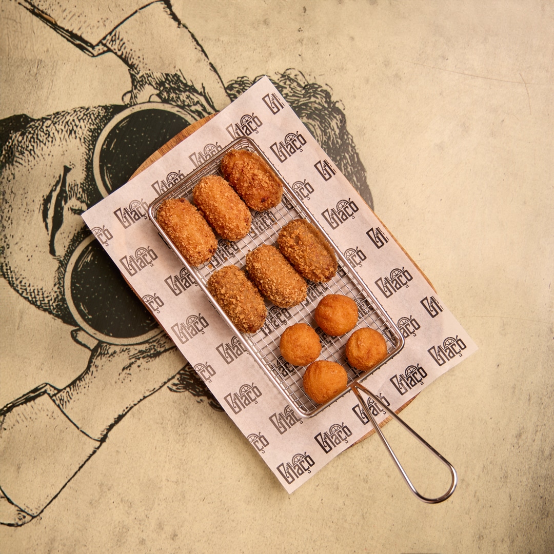 Receta típica venezolana de masa de trigo rellena de queso fundido y acompañado de nuestra mayonesa de apio. 5 unidades por ración.